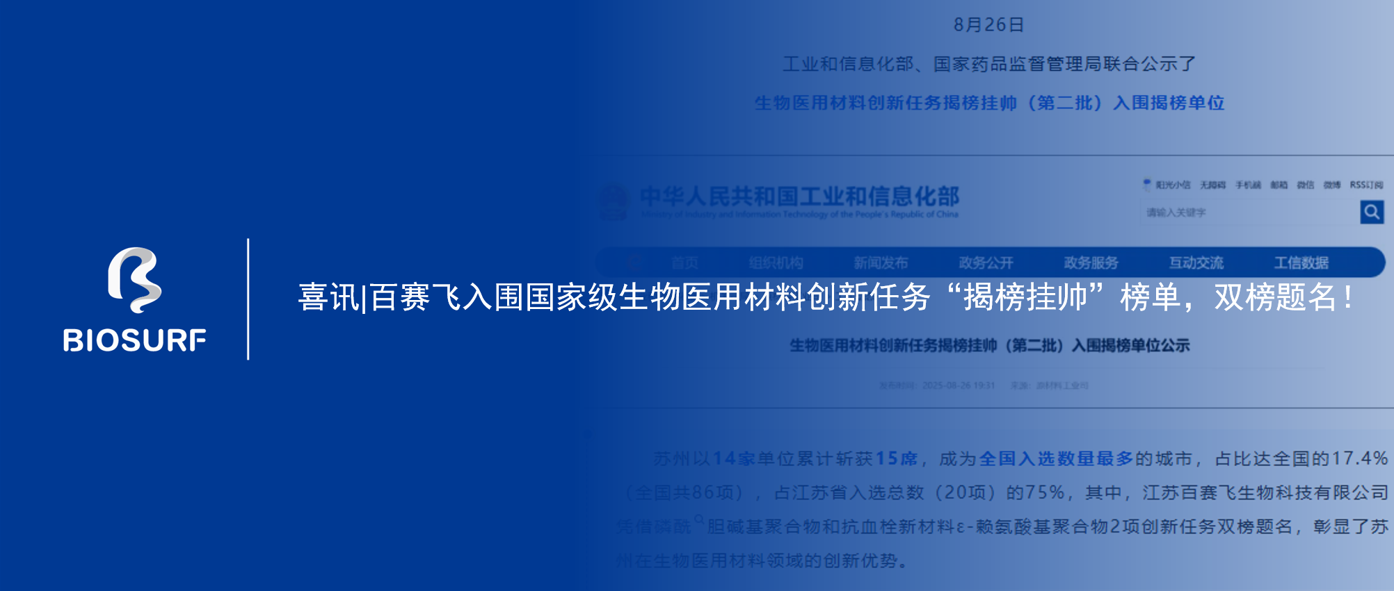 喜讯 | 百赛飞入围国家级生物医用材料 创新任务“揭榜挂帅”榜单,双榜题名!